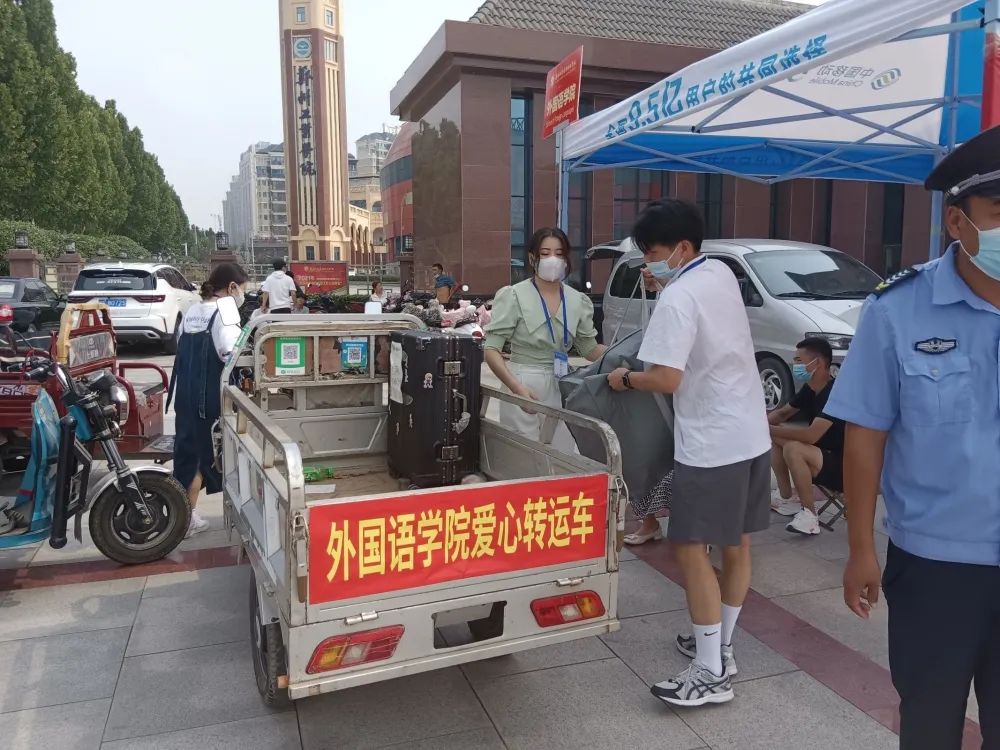 迎新志愿者在西门口为新生搬运行李,引导新生入校。