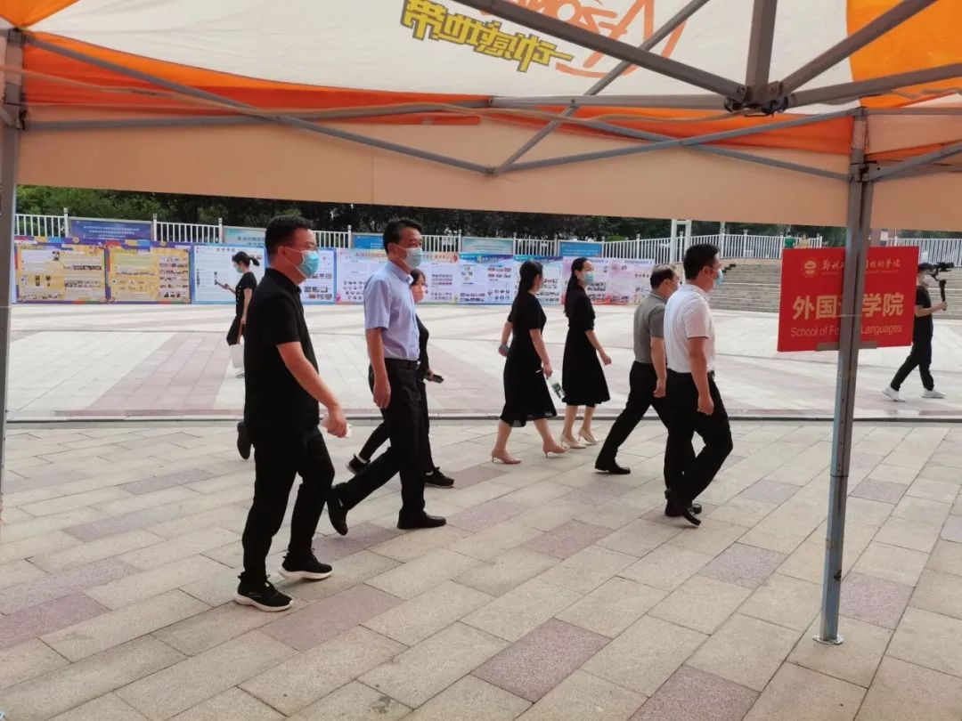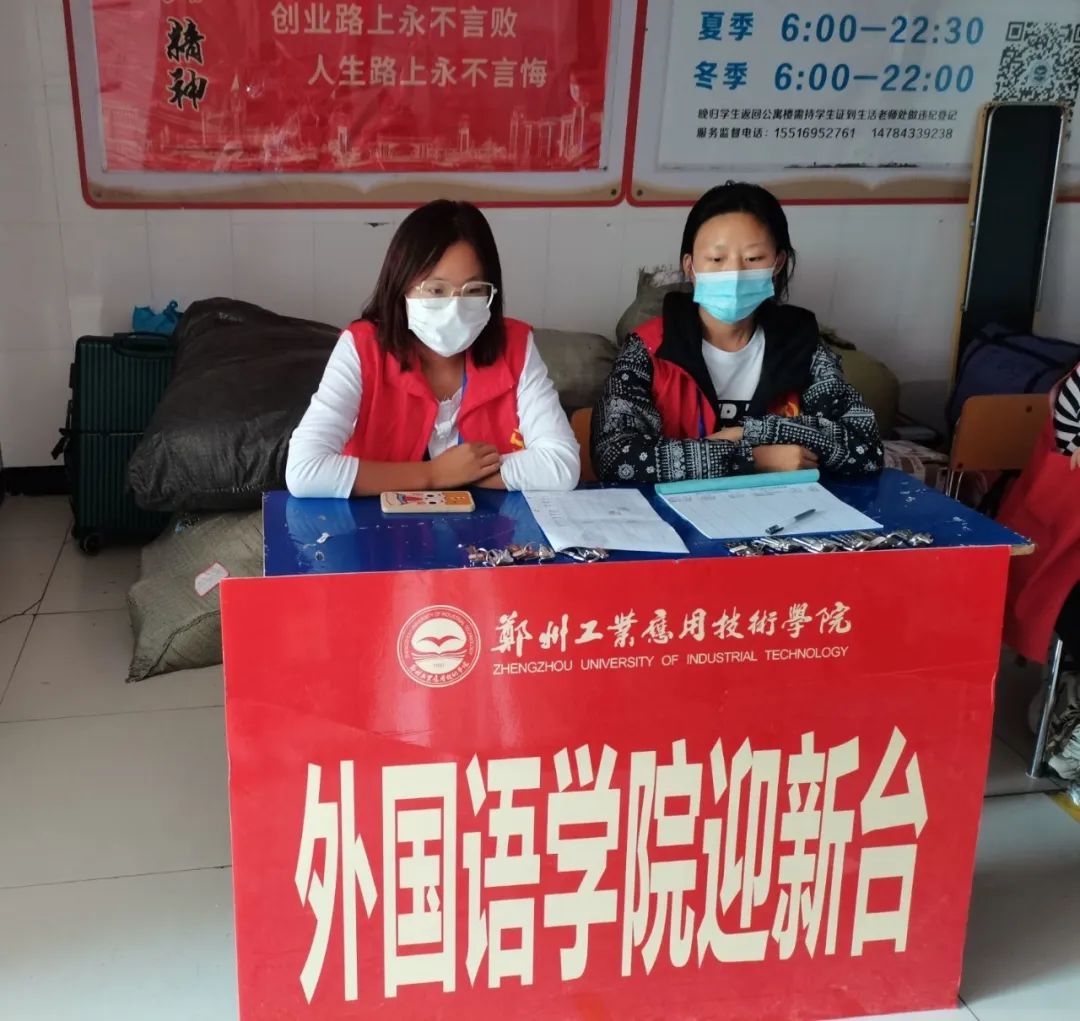 公司在迎新台安排了老师和志愿者,员工到达此处后,上交健康检测表、返校承诺书、返校申请书,然后进行线上报到。校领导到达迎新现场了解迎新工作的进行情况,并同师生进行亲切交谈,热情欢迎新同学的到来。