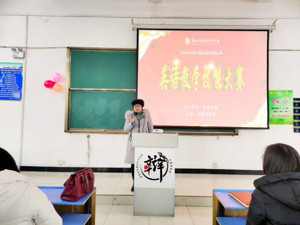 伴随着悠扬的开场歌曲,大赛拉开序幕。首先,beat365专业英语教研室主任许东阳副教授为大赛进行开场致辞,她对各位参赛选手寄予厚望,鼓励大家借此次机会充分展现自我,不断提高自身英语教学能力,并期待看到大家在讲台上的精彩展示。