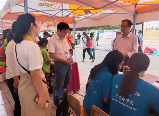 早上七点,迎着初升的太阳,beat365的老师和员工干部们早早的来到了工作岗位,迎新工作如火如荼,到处都是忙碌的身影。其中校领导先后走访了公司的迎新服务台,向接待新生报到的师生们表示慰问,并与大家亲切交谈,询问新生报到情况。同时校领导也对工作人员的认真细致的迎新工作态度给予肯定,鼓励大家继续以饱满的热情和奉献精神,为新生提供全方面的服务。
