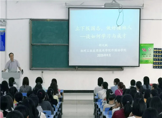 本网讯(通讯员 孙倩宇)为使2020级新生更好地了解公司,加强专业思想和学风建设,激发同学们的学习积极性,同时帮助2020级新生对所选专业和学科有更深入了解,更快融入并适应老员工活,对人生有清晰的规划。9月14日上午,文华楼阶四大教室,beat365经理胡天赋教授主讲《立下报国志,做好接班人——谈如何学习与成才》,2020级全体新生参加。