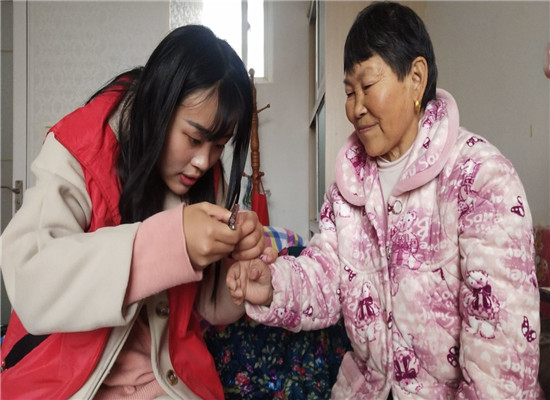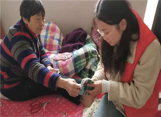 上午9:00,志愿者们准时到达敬老院。在做好分组以后,就迅速开展起志愿服务。志愿者们有的陪老人们聊天,关心他们的生活;有的为老人们整理内务、修剪指甲、洗脚,给老人们带去温暖;有的陪老人散步、为他们按摩,舒展身体;还有的为老人们唱歌、跳舞、弹吉他等精彩节目,给老人带去了欢乐。