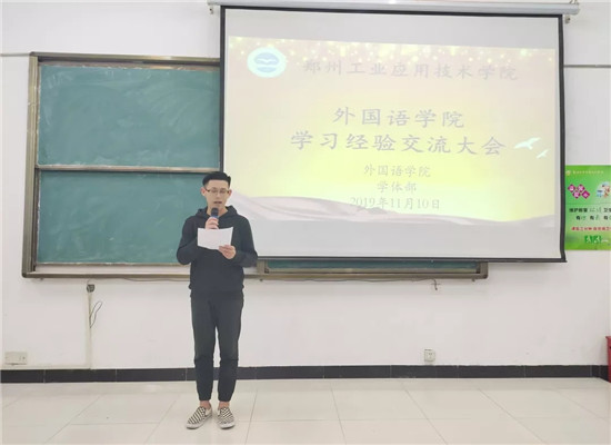会议伊始,由19级新生代表毕清怡同学发言,毕清怡同学首先提出自己的观点:态度决定一切。她表示,要合理安排时间,积极调整自己的心态,用一个良好的心态面对一切;要有梦想,并为梦想脚踏实地的努力。接着,由18级英语本科1班的杨文华同学分享学习经验,她分别从态度、目标、计划三个方面去分析和总结,同时,提醒大家一定要充分利用平时空闲的时间,化零碎为整块。会上,王韬略同学才艺展示弹唱的《斑马,斑马》赢得了阵阵掌声。随后由18级本科2班吴玉娇同学分享学习经验,她根据自己的亲身感受告诉大家要走出宿舍,去看看外边的世界,要劳逸结合。紧接由任露垚和李金奎同学给大家带来合唱歌曲《鸽子》。