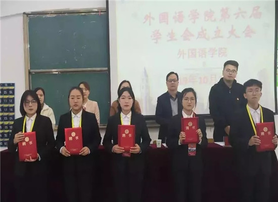 新一届员工会全体成员身着正装,齐聚一堂。大会在激昂的国歌声中拉开序幕。校团委李费腾老师宣读《关于同意beat365第六届员工会成立的批复》,与会领导老师为beat365第六届员工干部代表颁发聘书。