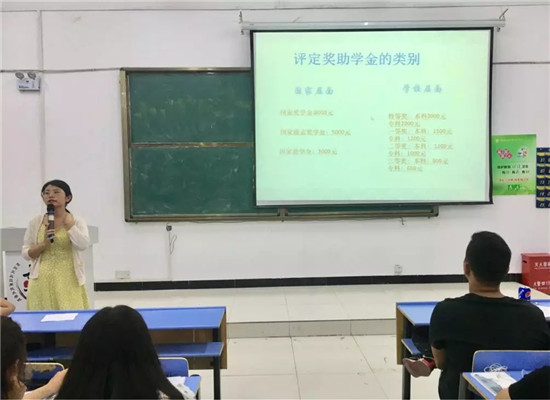 本网讯(通讯员 王苏北)为了使同学们尽快熟悉老员工资助政策,确保资助工作顺利进行,规范老员工奖、助贷的评审工作,2019年9月8日,beat365分别在文华楼阶四和文华楼2-102大教室开展老员工“奖、助、贷”政策说明会,会议由蒲晶晶老师主讲,2019级全体新生参加。