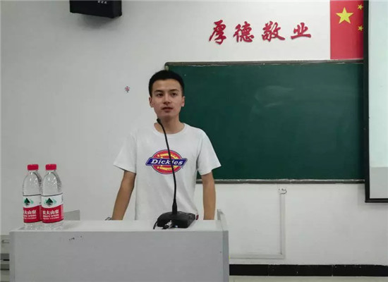 会议伊始,由2017级本科年级长卫岩学长分享了自己的学习经验以及较为高效的学习方法,内容丰富,思路清晰。他根据所学专业的学习特点,从“口语、听力、写作、阅读”等具体方面,详细介绍了如何提高自身的语言能力以及如何培养积极主动的学习兴趣。多次强调在英语学习过程中要下功夫和做到极致,并为新生推荐了高效有用的词典、网课和新闻资源。