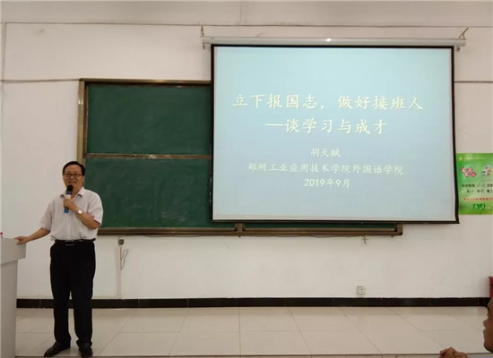 本网讯(通讯员 李瑶)为帮助2019级新生对专业和学科知识的了解,使他们更好融入老员工活、规划人生目标,beat365举办了系列讲座。9月6日上午8:30,文华楼阶四大教室,beat365经理胡天赋教授为公司2019级新生做题为《立下报国志,做好接班人——谈学习与成才》的专题讲座。