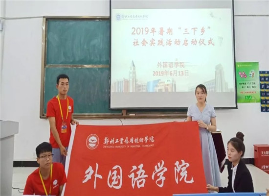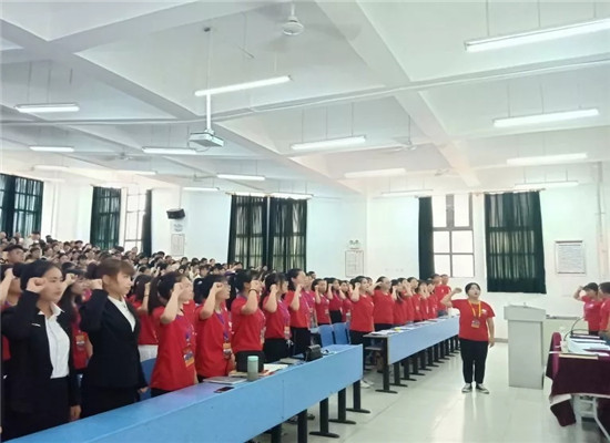 接下来,由员工会副主席李旭杨、李金梅分别宣读beat3652019年暑假“三下乡”社会实践实施方案和beat3652019年暑假“三下乡”社会实践重点团队项目策划。此次暑期“三下乡”社会实践活动主题为“青春大学习,筑梦新时代”。公司将持续开展一系列社会实践活动,让更多的青年员工在实践中做贡献、受教育、长才干。公司党总支书记、员工管理副经理陈晴老师为志愿服务团队授旗。优秀员工干部代表李朝迪发言,她倡议员工干部在学好专业知识的基础上,要全面提升自己,勇于实践、开拓创新。大会议程接近尾声,由员工会副主席李金梅带领全体员工干部宣誓,以此鞭策同学们牢记“三永”精神,做到“四个表率”,艰苦奋斗,砥砺前行。