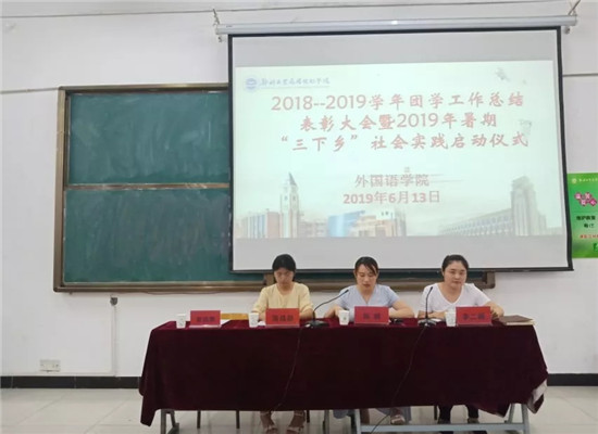 本网讯(通讯员 方靖涵)为更好地开展团学工作和加强团队建设,树立员工干部开拓进取,服务同学的思想,总结员工干部工作情况,beat365于6月13日在文华楼阶四大教室召开2018-2019学年团学工作总结表彰大会暨2019年暑假“三下乡”社会实践活动启动仪式。公司党总支书记、员工管理副经理陈晴老师,辅导员蒲晶晶老师、李二明老师,第五届员工会全体成员以及各班级主要班委出席大会。