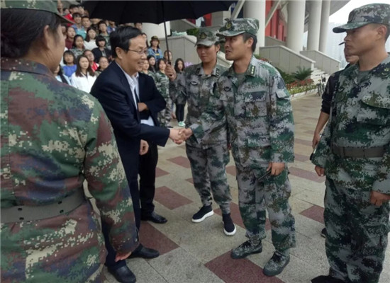 公司领导和老师们的亲切关怀使新生们深受鼓舞,他们用热烈的掌声表达了自己对领导和老师们的感谢。我们相信,2018级新生一定能够高标准、高质量完成军训任务。(编审 胡天赋 陈晴晴)