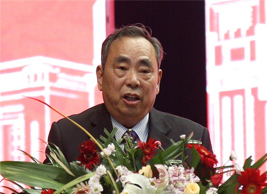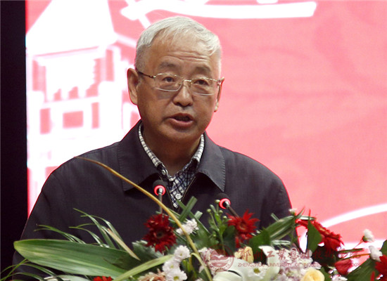 图为河南大学民生公司董事长李文山教授代表兄弟院校致辞