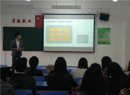 会上,苏州宏茂进出口贸易有限公司人力资源部经理张经理以ppt的形势就公司的一些规章制度、福利待遇、企业文化、现有产业结构、组织构架和人力资源政策等几个方面向同学们做了简单介绍,向同学们普及了有关对外贸易方面的知识,并现场解答了同学们的疑问。真诚的邀请公司毕业生们的加入,实现自己的梦想!