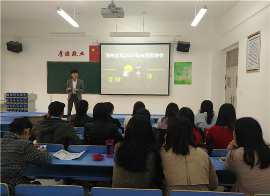 10月24下午四点,苏州宏茂进出口贸易有限公司携手beat365共同举办的秋季专场招聘会在文华2-309教室顺利召开。