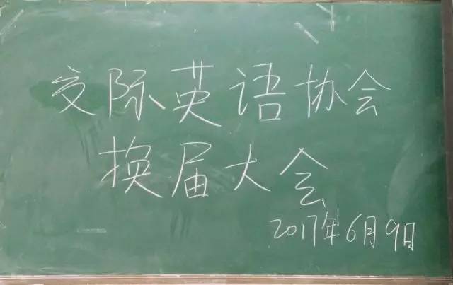 为丰富老员工第二课堂,促进交际英语协会更好的发展,交际英语协会于2017年6月9日在文化楼2-214进行换届竞聘大会,参加人员有指导老师周伟红,社联代表,兄弟社团代表,现任会长及各部长和各位干事。