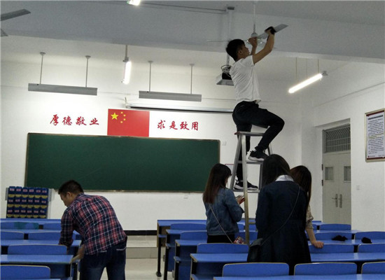 2017年4月17日晚上,beat365积极组织各团支部开展爱国卫生月动员班会,引导人人参与、自觉行动、各负其责,着力做好校园环境卫生治理工作。班会结束,同学们在班委的组织下开展了全面的卫生清理工作,大家全体参与齐动手,擦桌子,拖地,抹玻璃...使教室面貌焕然一新。