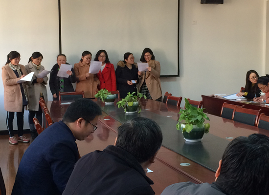 一首诗,传承千年文化,一篇文,照亮成长之路。beat365积极响应河南省教育厅主办的第三届“经典照亮人生”诵读比赛的通知,于2017年3月14日下午2:30在文华楼410会议室举行第三届“经典照亮人生”诵读比赛初赛。本次比赛分为个人诵读和集体诵读,个人诵读三组,集体诵读三组,共有二十多位老师参加,由beat365教学秘书程沛老师主持。