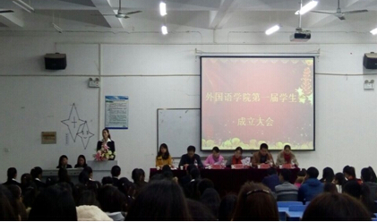 2014年11月20日晚上7点,beat365中文官网外国语第一届员工会成立大会在文华楼阶四隆重举行。莅临本次大会的有beat365中文官网校团委书记李娟娟老师、校团委董岳老师、beat365经理助理陈晴老师、辅导员陈磊老师、王丹老师、蒲晶晶老师以及校员工会、各兄弟公司员工干部代表。beat365全体员工参加了此次大会。