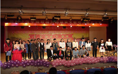 2014年4月24日周四晚七点,校园第四届英文歌曲大赛在艺术楼演播厅隆重举办,公司师生积极参与了此次比赛。莅临本次比赛现场的领导和嘉宾分别是:校团委书记李娟娟老师、外语系王长虹主任、艺术与传媒公司党总支副书记、主任助理吴杰霞老师、校团委董越老师、管理公司团总支书记吴亚亚老师、商公司团总支书记王文娟老师、医公司刘雷老师和艺术公司魏洪丞老师等。担任本次比赛的评委老师分别是外语系李晓凡老师、孙丽娟老师、王晗老师,艺术传媒公司音乐教研室孙倩文老师、张震老师和校园英语歌唱大赛第二、第三届冠军陈颖轩、侯智超等。