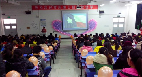 为了激发外语系员工的学习兴趣,提高学习方法、学习成效,外语系特于2013年12月10日15点50在文华楼阶四大教室举行“贾莉博士学术讲座”。参加本次讲座的有外语系王长虹主任,主任助理李爱萍老师以及外语系全体老师、员工和交际英语协会的英语爱好者们 。