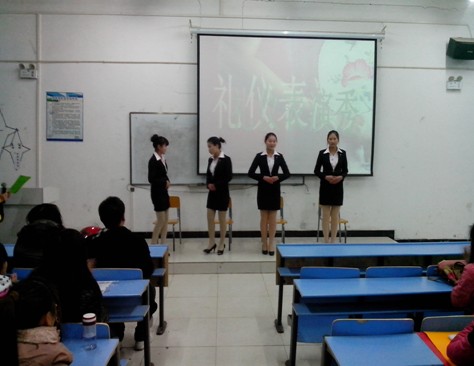 本次英语角活动以一首清新典雅的礼仪表演秀拉开帷幕,四位表演者以其精湛的表演带动了全场的气氛,活动期间,穿插歌曲、小品等活动,使整场活动高潮迭起,笑声不断。英语活动分为:主题简介、礼仪演讲、礼仪视频欣赏、游戏互动、图片竞猜六大板块。同学们有备而来,在会场认真讨论,回答问题积极踊跃,尤其是在游戏互动期间引来众多同学纷纷参与,老师也热情加入,同学们争先恐后的抢话筒发表演讲,热情高涨。