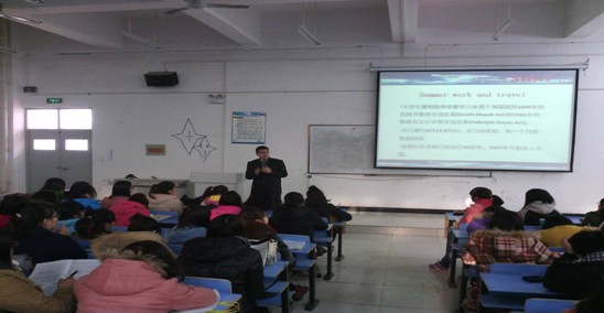 为了增加同学们对就业前景的认知,给同学们提供更多的就业机会,我系特邀请五月天教育集团赴美带薪实习负责人于洋于2013年11月26日在文华楼阶四召开赴美带薪实习讲座。