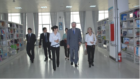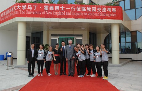 在公司领导及相关同志的陪同下Dr.Martin Hovey博士一行参观了建筑工程公司、图书馆、华信小剑桥幼儿园等,所到之处,受到了相关单位师生的热烈欢迎。