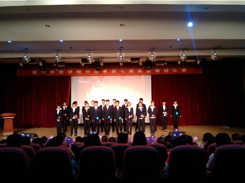 在外语系团学会的精心筹划下,2013年5月31日晚在艺术楼演播厅举办了外语系第七届英文演讲比赛决赛。莅临本次大赛的嘉宾有校员工处罗利远副处长、校团委董岳老师、外语系王长虹主任、外语系主任助理李爱萍老师、外语系教学秘书杨静老师以及外语系全体辅导员老师。另外,外语系全体老师出席会场,外语系全体同学观看了比赛。此次比赛的主持由李冠磊和祖玉凤担任。