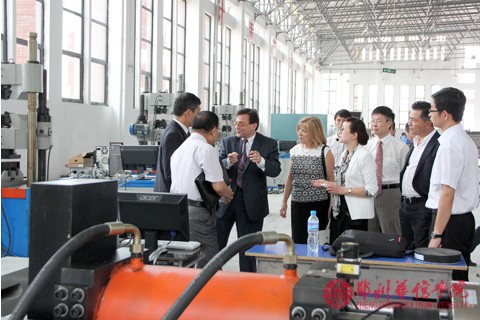 在校领导及建筑工程公司领导教师的陪同下,狄奥多西教授及夫人参观了建工实训中心和建工实验室。狄奥多西教授对建筑实验室建设表示了肯定,同时对于促成双方合作办学表示了极大的信心。
