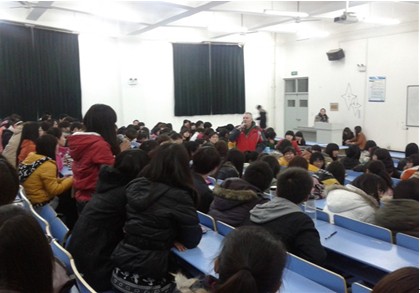 本次活动由一场热情的健美操拉开序幕。活动现场气氛热烈,参与活动的200多位同学积极和外教,老师互动交流。无论其英语如何,都积极与他人用英语讨论本次活动的主题并发表各自看法。同学们都争相和外教老师进行交流,气氛异常热烈。老师和同学们还都积极参与英语小游戏,进行竞猜,充分调动了同学们的积极性,使同学们都参与其中。
