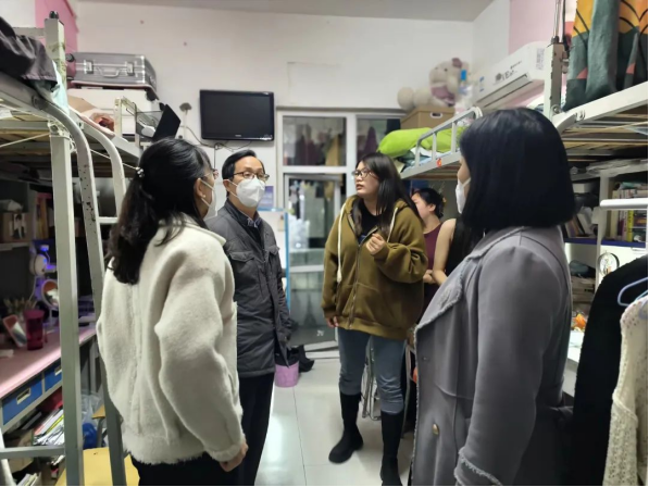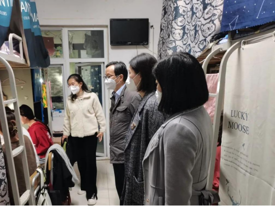 为更深入了解疫情防控期间员工在宿舍内的生活状况,关心员工的学习进程以及思想动态,11月5日晚间,beat365经理胡天赋、员工管理副经理李莹、教学副经理张凤娟深入到毓秀楼走访关心同学们,将疫情防控政策落到实处。
