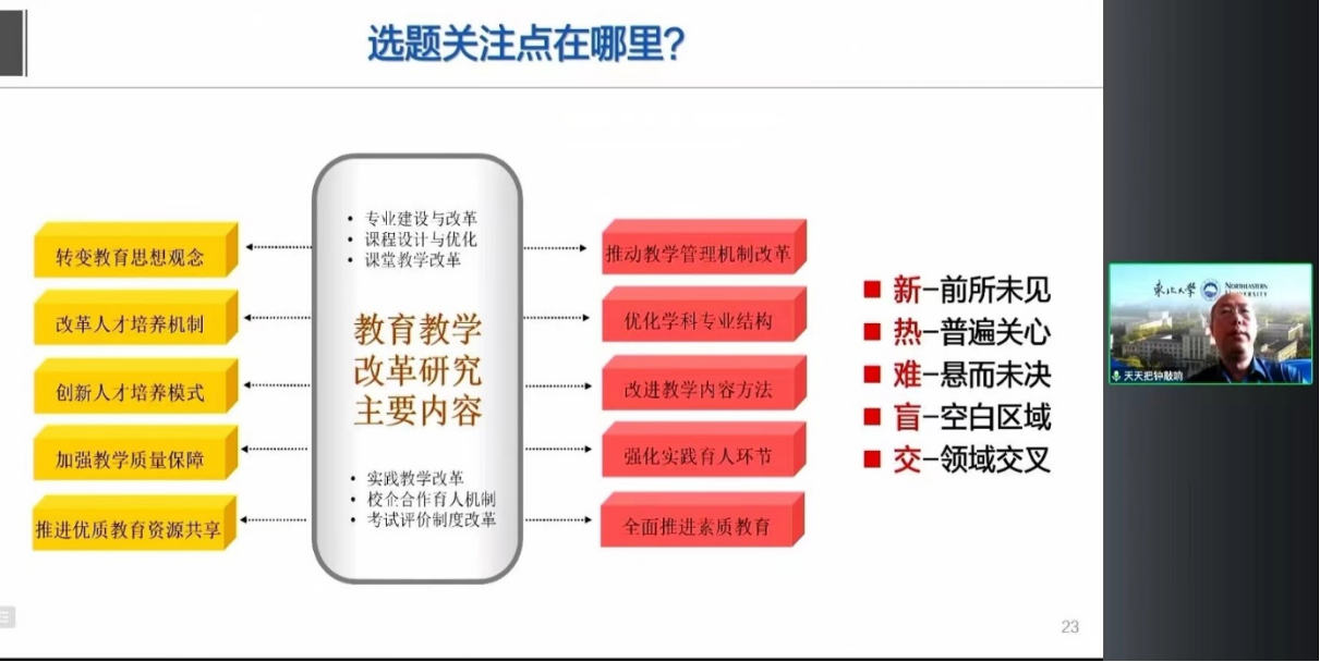 为进一步优化公司教师的教学研究内容,提升教学研究水平,促进公司教学和人才培养质量的提高,公司于12月15日下午15:00组织全院教职工在超星学习通平台上参加了“从问题到课题——教学研究项目选题与实施“的专题培训。本次培训以在线讲座的形式开展,由东北大学徐林教授主讲。