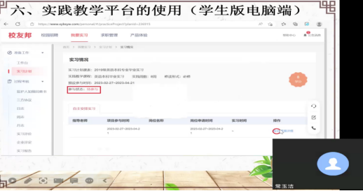 2023年2月26日,beat365在钉钉线上召开了2019级本科生毕业实习动员大会,参加此次会议的有beat365教学副经理张凤娟经理、beat365全体毕业实习指导老师和2019级全体员工。会议由实训管理中心常玉洁主任主持,傅勇老师向大家介绍毕业实习。
