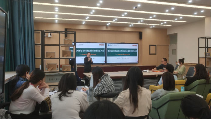 活动上,邹亚丽老师围绕大赛相关文件精神,从赛程设置、比赛重点、决赛环节等方面出发,结合个人备赛到参赛各个节点的心得体会,进行了生动、丰富、详尽的介绍。邹亚丽老师将自己的参赛经验总结为:突出创新、精心选题、巧妙设计的同时,注重教学资料的精美、注重个人教学仪态的塑造,在日常的教学科研中,同样需要注重积累和教学态度。