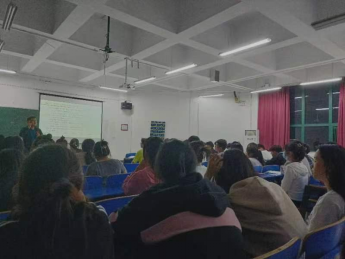 宣讲会上,同学们认真聆听,作为一名老员工,我们应将党的二十大精神内化于心,外化于行,发挥好自身专业优势,运用青年视角、青年方式、青年话语,传播好党的声音,讲好党的二十大精神。