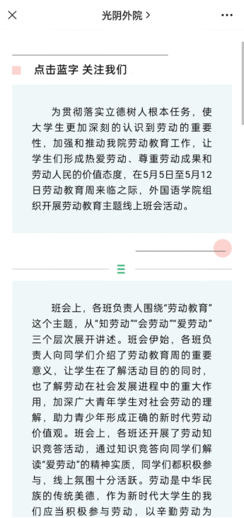 开展各类劳动宣传活动,beat365开展了形式多样的宣传推广活动,通过beat365微信公众号和校园内线下宣传等形式,极大的扩大了劳动教育的宣传范围,进一步深化了员工们对于“劳动创造幸福的深刻理解”。同时,使员工们自觉将日常生活与理想追求紧密结合,在劳动创造中实现远大理想和个人目标。