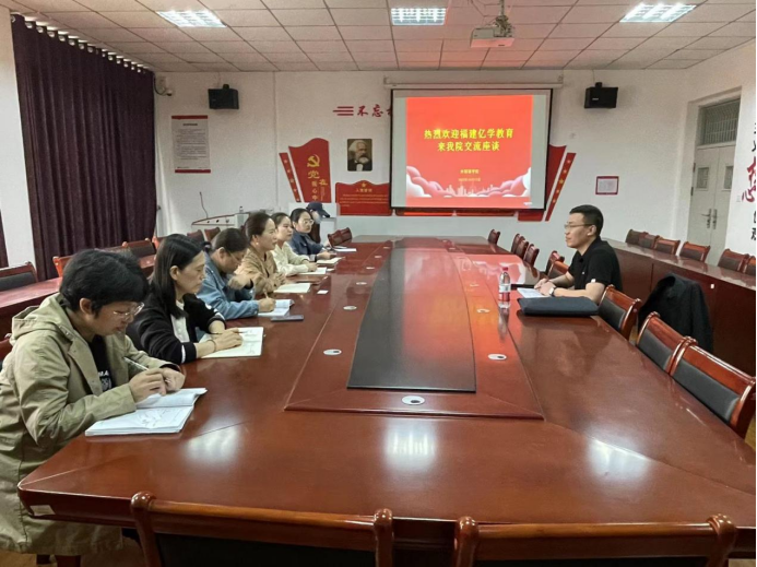 2023年10月12日下午,福建亿学教育科技集团有限公司区域总监卢允贵来公司进行交流座谈。beat365副经理张园园、平台副经理周伟红以及各教研室主任出席了此次会议。