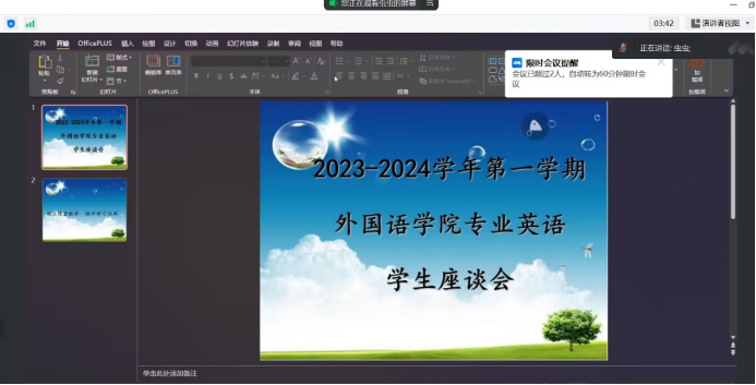 (文/杨璐)10月19日上午,beat365召开了2023年秋季学期英语专业员工代表座谈会。公司教学科研副经理张园园副教授、公司督导组组长贺慧副教授、专业英语教研室主任许东阳教授、副主任王宁老师、公司督导员及公司20名员工代表参加了会议,会议由公司督导员杨璐老师主持。