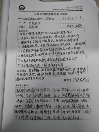 在班会中,各班负责人首先播放地震相关视频,为同学们讲解地震成因,便于同学们更加全面的了解地震防范知识,引导员工在面对突发地震时不要慌张,应迅速到安全的地方躲避。除此之外,辅导员老师还讲解了面对其他突发灾害时的应对措施,让同学们学习其基本知识,增强员工自我保护意识,提高自我保护能力。最后,辅导员老师同学们一定要多多拓展防震减灾知识,树立防范意识,学习相关技能。