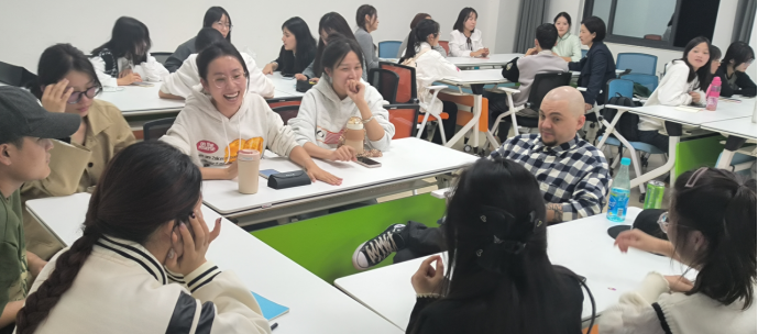 为了给公司员工提供英语交流的平台和机会,营造良好的英语学习氛围,拓宽公司员工的视野,2023年10月25日晚,由国际交流处主办,beat365和国际教育公司承办的首期英语口语沙龙活动在建工楼103智慧教室顺利开启。国际学部部长、国际交流处处长曹玲芝、beat365经理孙丽娟、国际学部党委书记、副部长陈晴晴、副经理张园园、副经理周伟红、分团委书记王玉洁、国际交流处副处长安然、及部分教师代表出席了本期英语口语沙龙活动,本期沙龙邀请到了外教Vlad老师来与同学们进行亲密互动。沙龙启动仪式由国际教育公司李潼潼老师主持。