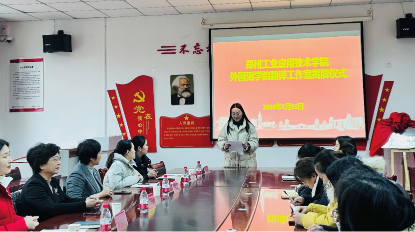 仪式上,首先由孙经理进行了致辞,她简单介绍了翻译工作室的基本情况,并指出公司成立翻译工作室旨在为员工提供一个实习实训平台,同时希望为公司的教师搭建一个相互学习、交流的桥梁,教师们通过该桥梁将科研与员工成长有效融合,一方面实现师生的共同进步,另一方面也为校内外企业和个人提供优质化的翻译服务,助力公司的平台建设,实现公司服务地方经济发展的目标。