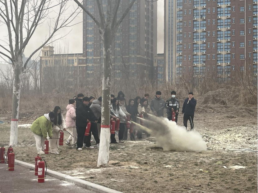消防演练开始前,保卫处工作人员首先对生活中常见的火灾原因进行分析,普及了消防安全知识、自救逃生知识,并对干粉灭火器的使用方法进行了讲解、示范、指导,强调使用灭火器要保持镇静,遇到火情千万不要慌乱失措,牢记“一晃,二拉,三压,四喷”要领,掌握正确的使用方法。紧接着,公司师生在培训人员的示范下进行灭火器实操体验灭火器扑灭盆火,掌握初起火灾的扑救技能。