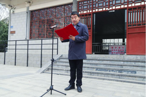 新郑市文物保护中心主任刘伟鹏主任致辞。他首先对公司在郑国“车马坑”遗址博物馆建立学雷锋志愿服务实践教育基地表示热烈欢迎和由衷的感谢。他介绍到,郑国“车马坑”遗址博物馆是一座集文物保护、文物展示、文物研究、寻根朝圣、生态旅游于一体的遗址性文物景区,是一处珍贵的古文化遗产和全国乃至世界罕见的奇观。他表示,希望以此为开端,来带动“馆校”的多方位合作,为同学们创建一个学习、实践、传承中原文化的基地,希望青年志愿者们能够在实践中不断成长,能在实际工作中继续传承历史文化。