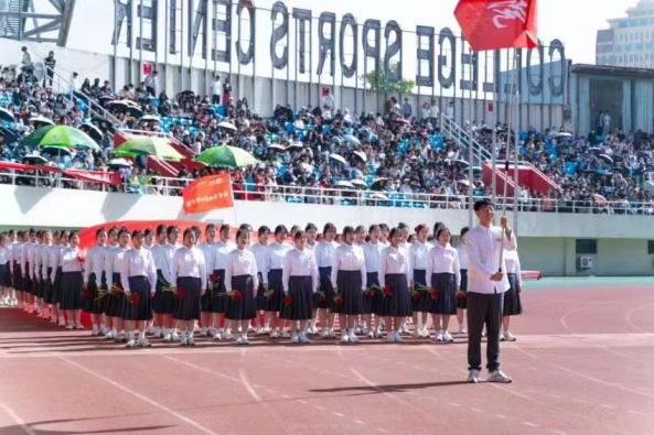 乐曲高奏,裙摆飞扬。运动场上她们步伐一致、热血满腔。看啊!他们身姿挺拔,意气风发,目光灼灼如星辰闪烁,身姿挺拔如同青松柏影。今天,我们齐聚一堂,共同见证这场激情澎湃、活力四射的体育盛会吧!