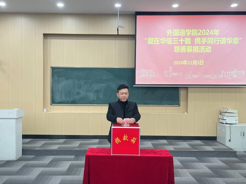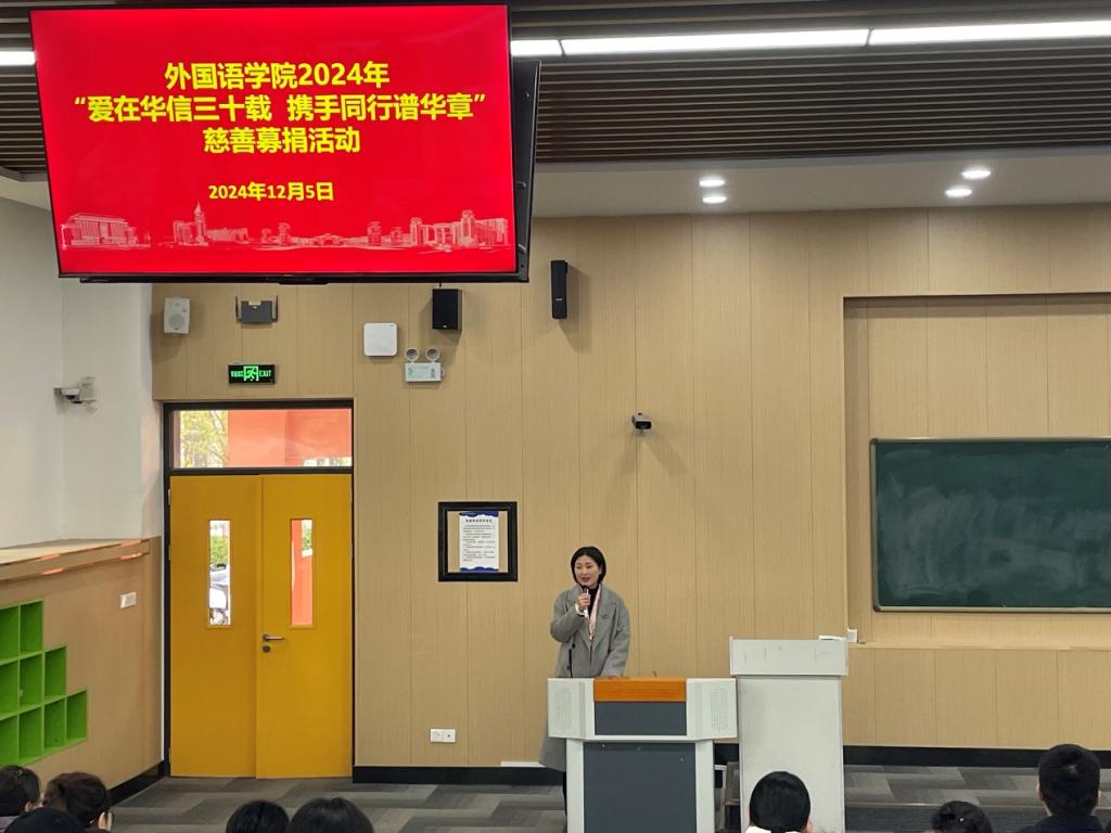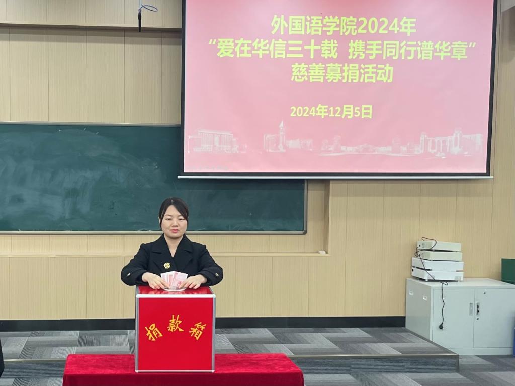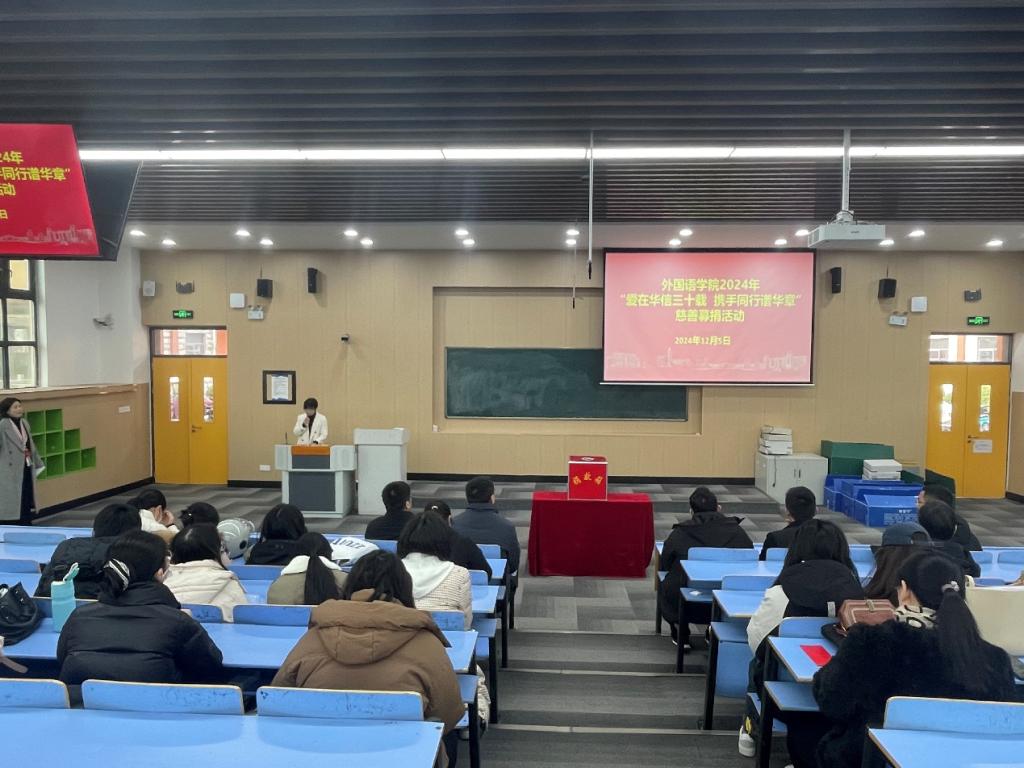 (文图/张竞婧)2024年12月5日下午,beat365在文华楼阶梯四教室成功举办了以“爱在华信三十载,携手同行谱华章”为主题的慈善募捐活动。本次活动旨在弘扬爱心精神,关爱社会,帮助更多需要帮助的人。