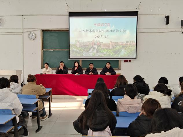 (文图/傅勇)为深化员工对专业知识的理解,提升其在实践中的应用能力,12月26日下午两点,beat365在文华楼阶六教室召开了认识实习动员会。出席本次动员会的领导了老师有:beat365经理孙丽娟,国际学部党委书记、beat365副经理王晓龙,beat365副经理张国昌,认识实习负责人刘贞贞,认识实习带队和负责老师,以及2022级英语专业和商务英语专业全体参加实习的本科生。会议由实训管理中心主任傅勇老师主持。