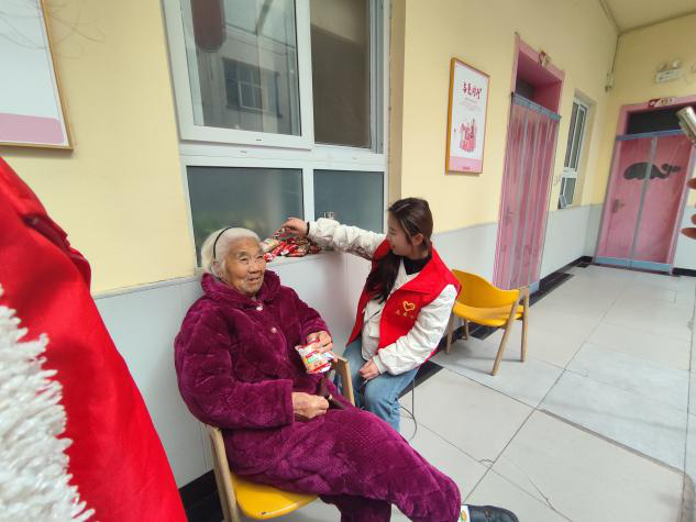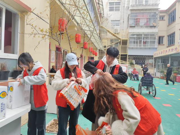 活动现场,同学们将牛奶、燕麦片等饱含深情的慰问礼物依次送到老人手中,表达对老人们深深的关爱与敬意。送完礼物后,同学们围坐在老人身旁,或耐心聆听老人们讲述往昔的故事,对每一句话都认真回应;或细致询问老人们的健康状况,关心他们生活中的点点滴滴。同学们专注倾听的神态、贴心的问候,如同温暖的阳光,照亮了老人们的心房,让他们的脸上绽放出幸福的笑容。