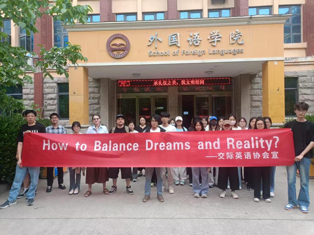 (文/王晶晶 图/王豪)在2025年4月29日春和景明的午后,由交际英语协会精心策划的“Dream vs Reality”英语角活动于beat365正门前圆满落幕。活动特邀外教Vlad、Lidiia以及何智慧、申恬恬老师莅临指导,并吸引了2023级英语(BK)04班同学们的积极参与。围绕这一富有哲思的主题,师生们展开了一场思想与语言交织的精彩对话。