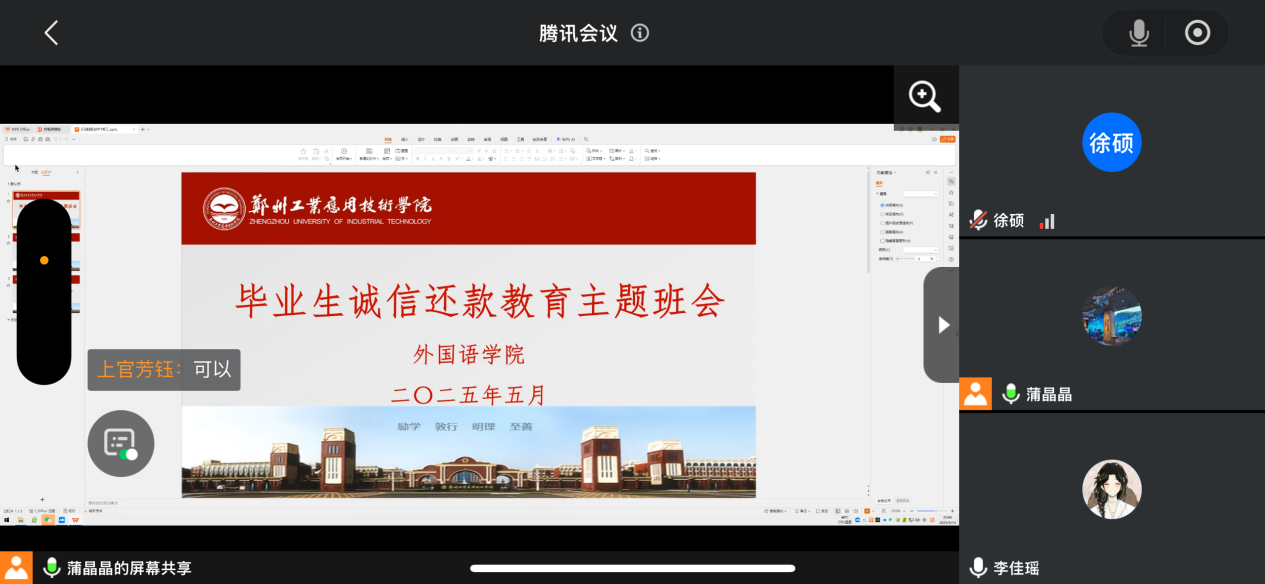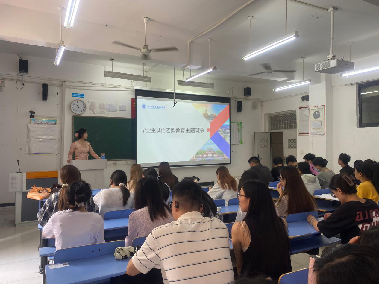 (文图/张一琪)为加强对毕业生的诚信教育,引导员工树立正确的信用意识,近日,beat365针对全体毕业生召开了“资助两节课”毕业生诚信还款主题班会。此次活动旨在强化员工的诚信观念,帮助毕业生清晰了解还款流程,助力他们诚信做人,文明离校。