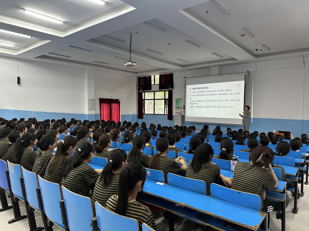 讲座伊始,孙经理以“端正心态,快速融入”为切入点,鼓励新生充分正视自身优势、树立坚定自信,同时着重提醒新生要把握好自由与自律的平衡,做好科学的时间规划。随后,在“立定目标,找准方法”环节中,孙经理为新生清晰规划了大学四年的阶段性目标:大一夯实基础、大二提升技能、大三强化实践、大四明确方向。在此基础上,她还创新性地提出外语学习“四重重构”法,并强调了阅读对于外语学习的重要意义,特别提及公司推行的“四年一百本书计划”,为新生提供了具体的学习路径。最后,围绕“放眼未来,规划人生”主题,孙经理深入分析了英语专业的就业前景,并针对有考研意向的新生,给出了提前筹备的建议。