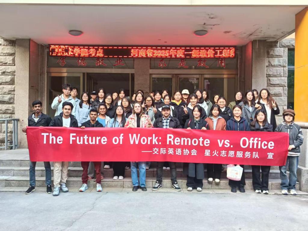 (文/肖雨蒙图/邓洁晨)2025年10月21日下午,由交际英语协会精心策划的“The Future of Work: Remote vs. Office”主题英语角活动在文华楼2-216开展。此次活动由任园园、熊晨曦、Lidiia、Vlad cucu四位指导老师悉心指导,围绕引导同学们深入探讨工作模式的未来走向,在锻炼英语口语表达能力的同时,激发对职场发展的思考与探索。